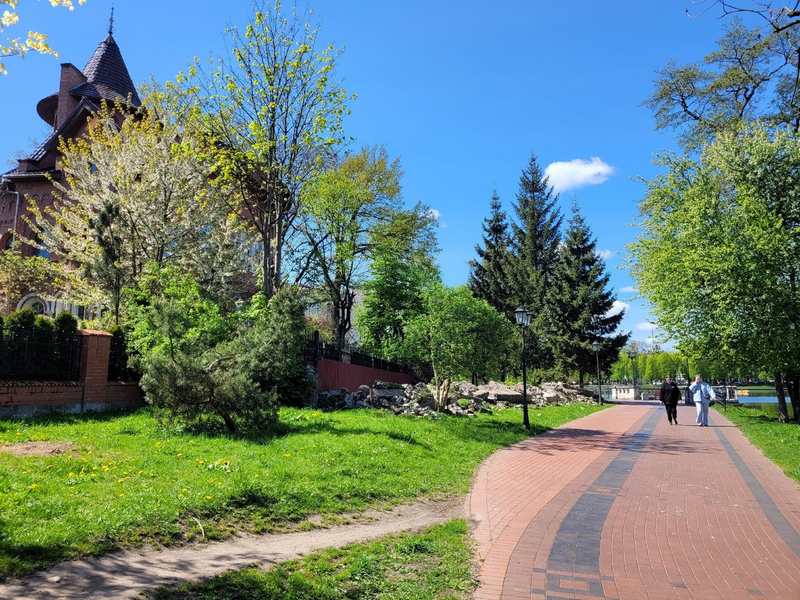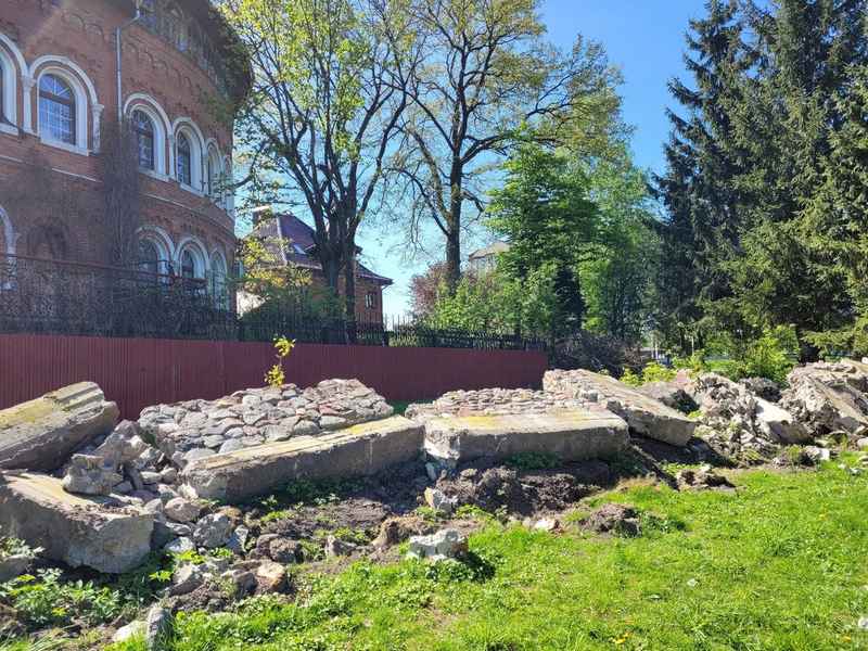 На набережной Верхнего озера в Калининграде у особняка, похожего на замок, снесли забор, оставив завалы из камня.