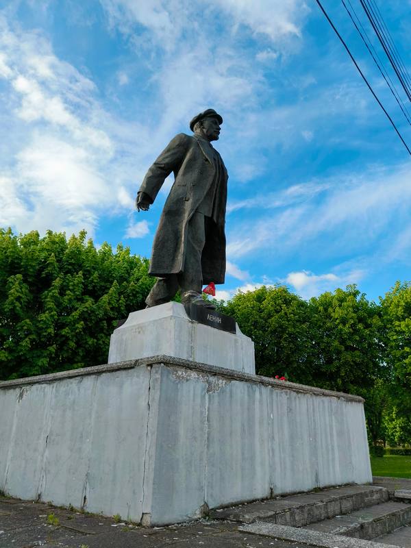 Памятник Владимиру Ленину на площади его же имени в Черняховске ждало необычное поздравление с Днём Победы.