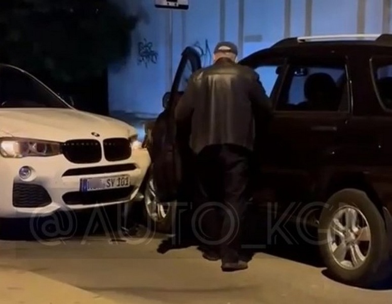 На опубликованном видео (используются нецензурные выражения, поэтому не можем распространять) мужчина в кожаной куртке действительно устало садится за руль и уезжает, ещё больше повредив БМВ.