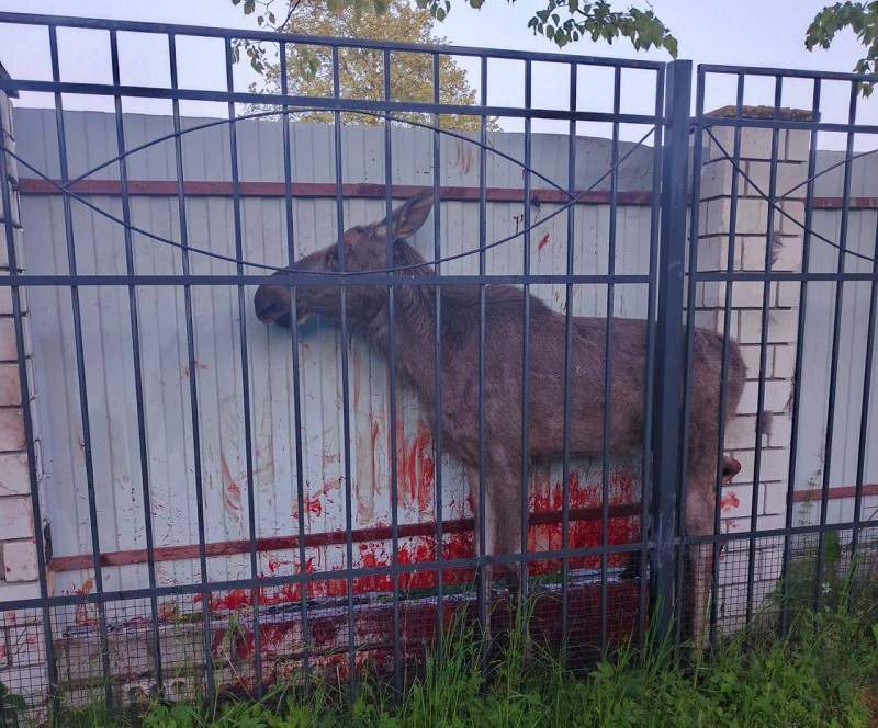 Копытное попало в зазор между оградами двух собственников и запаниковало. Пытаясь выбраться, зверь повредил трахею.