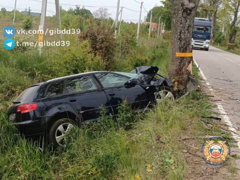 Как сообщает ГАИ Калининградской области, в 09:35, один из автомобилей стал обгонять другой, который поворачивал налево. Манёвр не удался и закончился столкновением как с обгоняемым, так и с деревом. В кювет попал автомобиль «Ауди А3». Один из водителей получил травмы.
