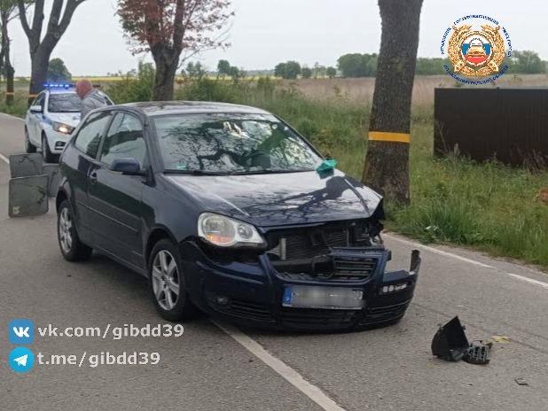 В Гурьевском районе на дороге Матросово – Краснополье в четверг, 22 мая 2025 года, в аварию попал легковой автомобиль с немецкими номерами модели «Фольксваген Поло».