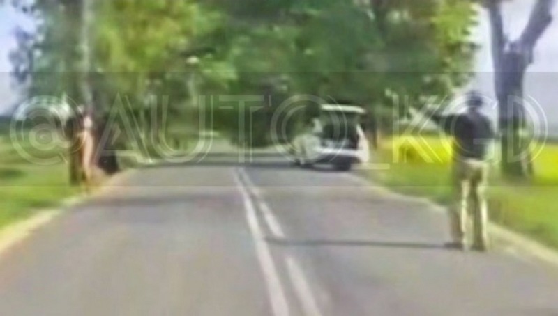 На дороге в Калининградской области среди жёлтых от цветущего рапса полей на видеорегистратор сняли девушку в чёрном плаще и туфлях.