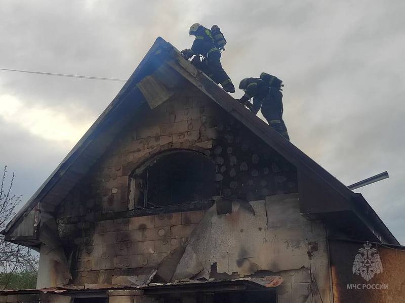 Загорелся строящийся дачный дом. Пламя охватило пространство в 100 кв м. На место происшествия на трёх машинах примчались пожарные. Они сумели вытащить из полыхающего дома пропановый баллон, что и помогло избежать взрыва газа.