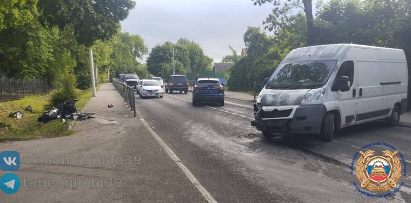 Ехавший по улице Суворова в Калининграде мотоцикл был разнесён на части микроавтобусом. Столкновение произошло вечером в пятницу, 30 мая 2025 года.