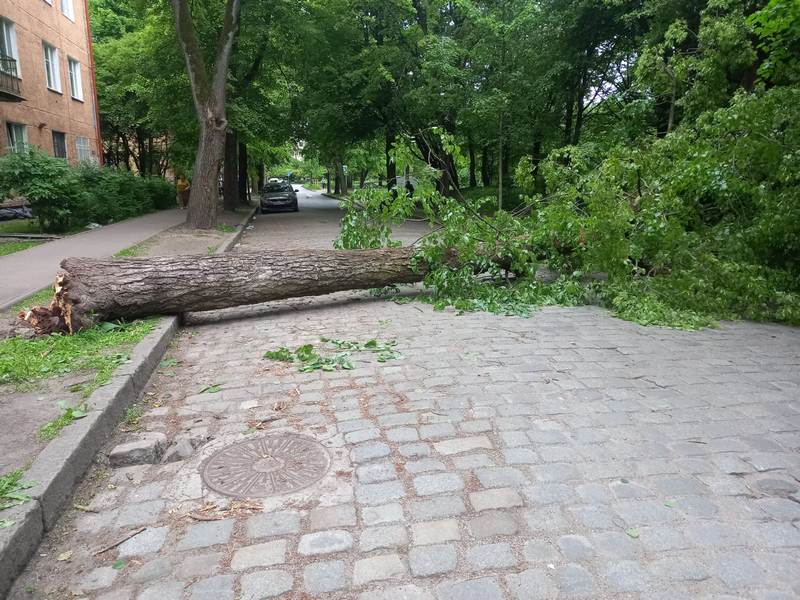 Деревья в последние дни падали не только в штормовую погоду. Один такой случай произошёл на улице Космонавта Пацаева. Другой, но уже в ветреный день, имел место на ул. Банковской.