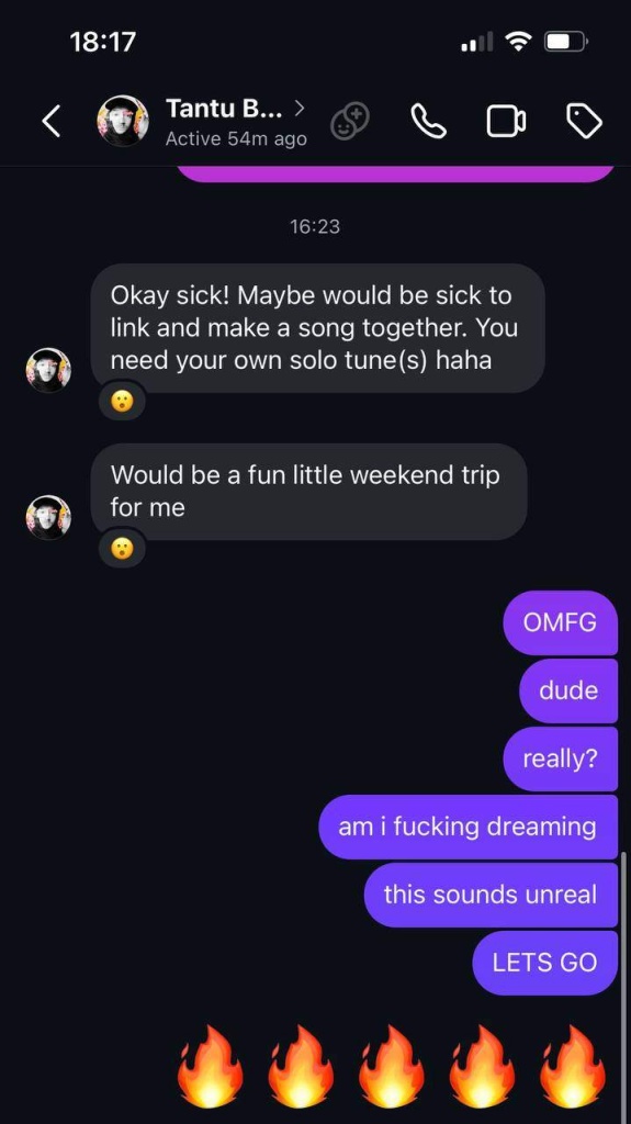 Можно было бы на этом и успокоиться. Но вскоре парень получил сообщение от продюсера и ди-джея Теуна де Круифа (более известен как Tantu Beats) из Нидерландов: «Было бы здорово вместе записать композицию, думаю про забавную поездку на выходных».