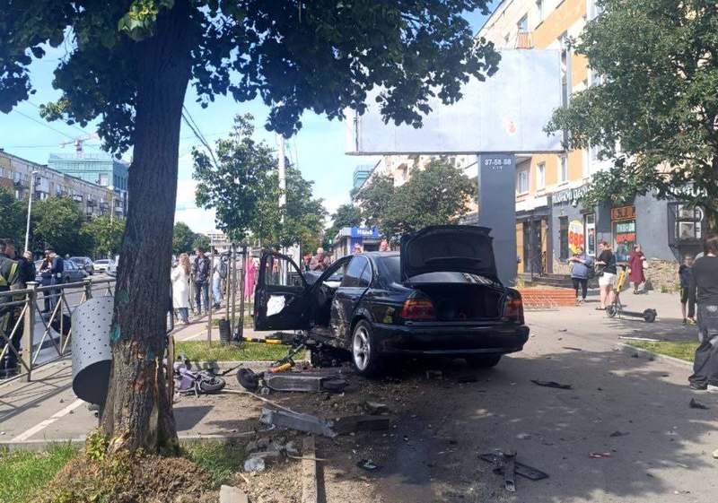 «Русский Запад» сообщал о жутком столкновении двух автомобилей на перекрёстке с улицей Краснооктябрьской. Гнавший на скорости не менее 100 км/час БМВ врезался в «Сеат» и вылетел к людям. На тротуаре чудом спасся подросток с самокатом, который был ближе всех к дороге, и ещё несколько человек.