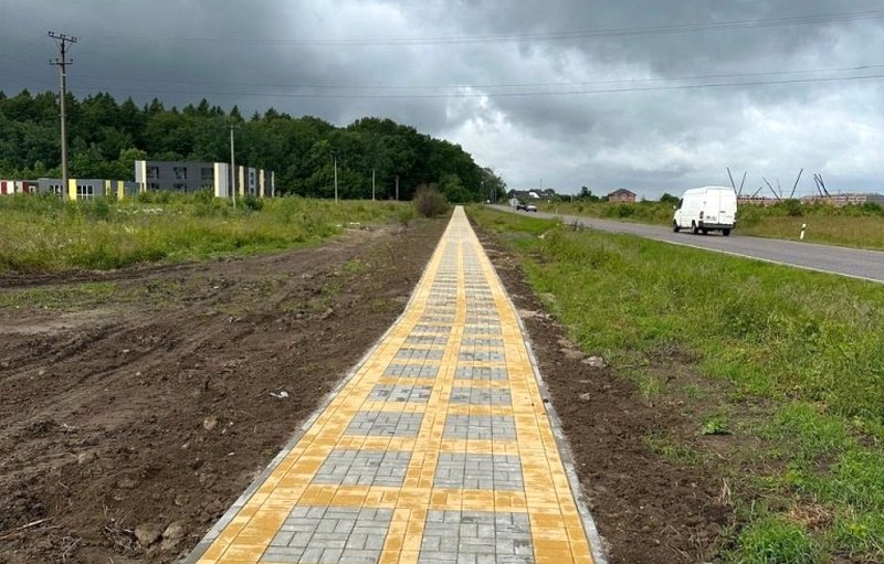 У юго-западного выезда с курорта проложили тротуар в чистом поле. Пешеходную дорожку не раскатали асфальтом, а вымостили плиткой. Трек для тех, кто перемещается на своих двоих вдоль улицы Центральной. Он соединил улицы Золотистую и ул. Гвардии рядового Андрея Арсентьева.