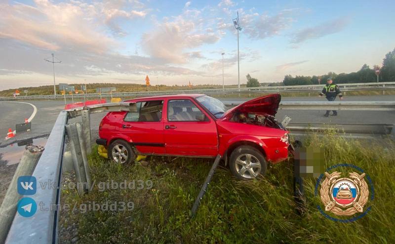 В Зеленоградском районе Калининградской области вечером в пятницу, 27 июня 2025 года, произошло загадочное ДТП: старый «Фольксваген» пробил ограждение Приморского кольца.