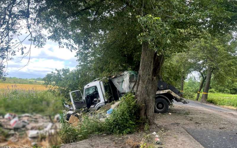 В 9:35 мусоровоз ехал по дороге Шатрово - Логвино – Кремнево. Водитель по какой-то причине не справился с управлением, автомобиль врезался в дерево.