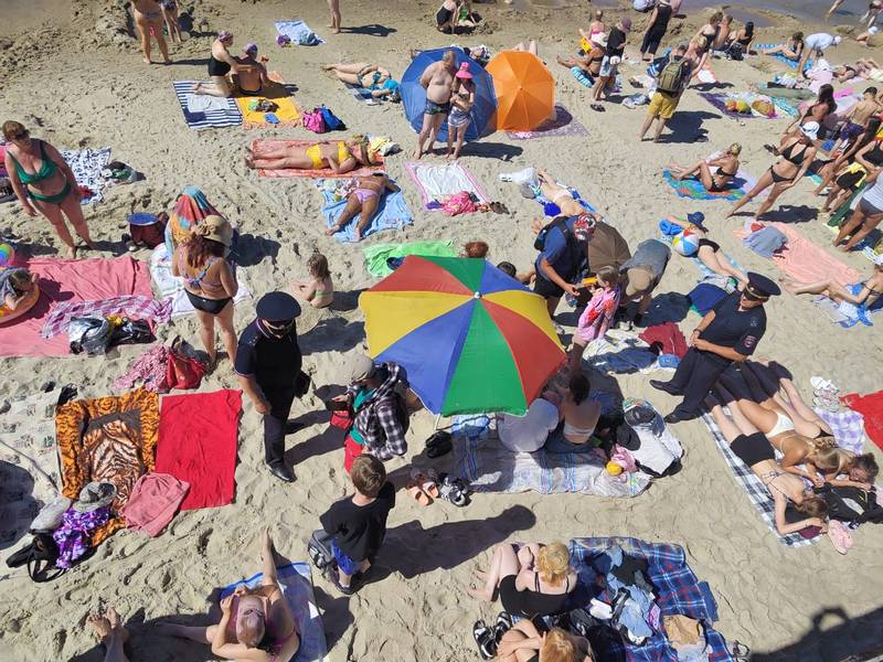 Подрастающие детки осваивали премудрости торговли с рук, предлагая отдыхающим различные, видимо, напитки (деталей администрация Зеленоградска не сообщает).