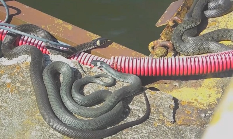 Причин происходящего отдыхающие и калининградцы не знают. Между тем, ужи появляются уже группами и вот пример: в официальном телеграм-канале Национального парка «Куршская коса» опубликовали видео, где в кадр попали сразу четыре ужа. Они выползли из тени заповедного леса на залитый солнцем пирс музейного комплекса нацпарка. Ужи сначала грелись втроём, а затем к ним выполз четвёртый. Работники парка сняли змеиную сходку на видео.
