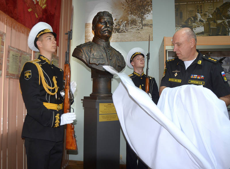 В Доме офицеров Балтийского флота на улице Кирова в Калининграде в среду, 9 июля 2025 года, торжественно открыли бюст в честь одного из руководителей советского государства Иосифа Сталина.