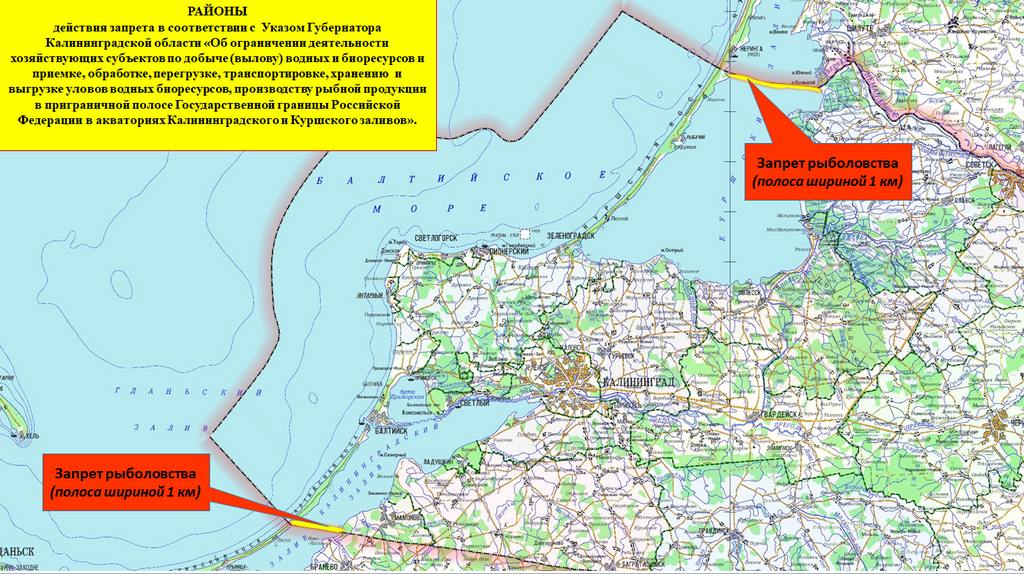 С 11 июля 2025 года запрещён вылов, приём, переработка и другие операции с рыбой в приграничной полосе шириной в 1 километр в акваториях Калининградского и Куршского заливов – для юридических лиц и индивидуальных предпринимателей. Простых рыбаков этот указ Алексея Беспрозванных постольку-поскольку не касается.