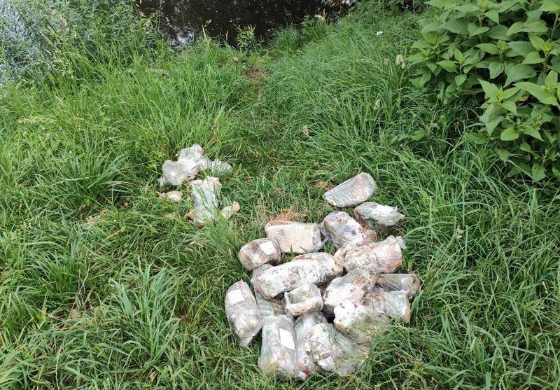 У озера вблизи улицы Чкалова складировали прямо на траву испортившийся полусгнивший хлеб в заводской упаковке.