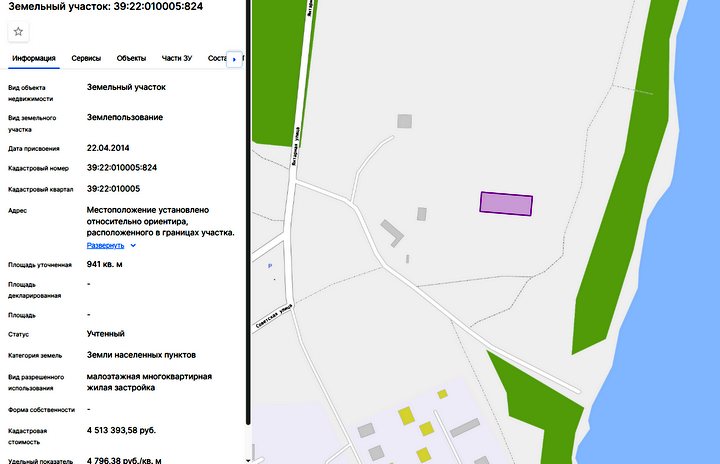 Он возникнет на участке площадью всего 941 квадратный метр (КН 39:22:010005:824) в довольно рекордный срок: разрешение истекает уже 4 февраля 2026 года. Каким будет новый дом, неизвестно. Власти теперь скрывают эти данные. До озера от земельного участка примерно 110 метров по прямой.