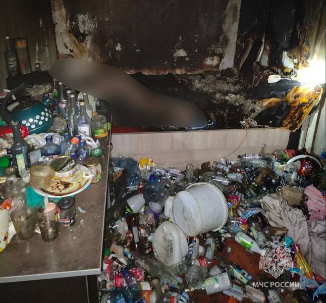 На фотографии с места происшествия видно, в каком ужасе жил мужчина. На полу, столе разбросаны пустые банки, бутылки, какие-то тряпки, объедки. Мусор уже практически перекрыл подход к дивану, который явно служил спальным местом.