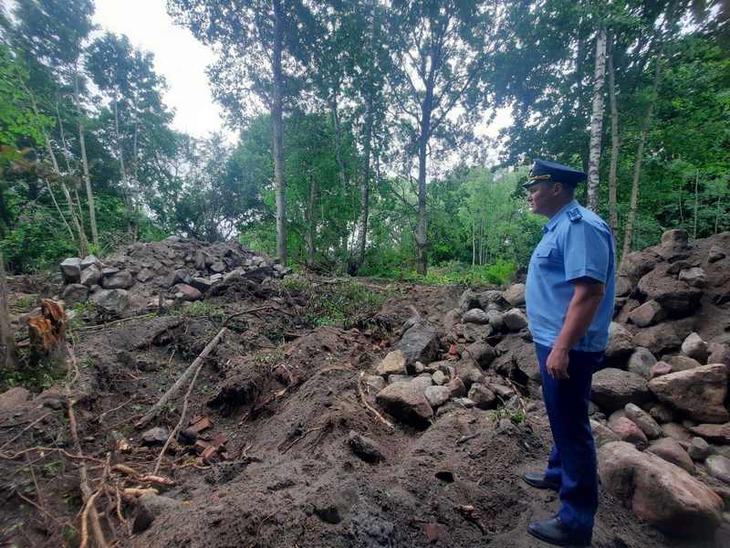 Выехавший на место прокурор района Никита Шмыдов, судя по фотографии, обомлел от масштаба разрушений и нанесённого природе вреда. По его инициативе материалы проверки направлены в полицию для возможного возбуждения уголовного дела.