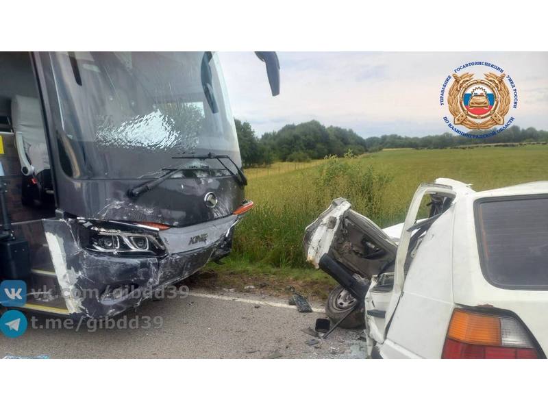 Как сообщает ГАИ Калининградской области, водитель легкового автомобиля «Фольксваген Гольф» не уступил дорогу следовавшему по главной автобусу и погиб в результате столкновения с ним.