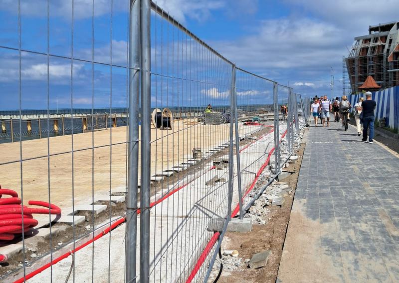 В Зеленоградске Калининградской области шедших к морю туристов разочаровали: к концу июля 2025 года променад разделили сетчатым строительным забором.