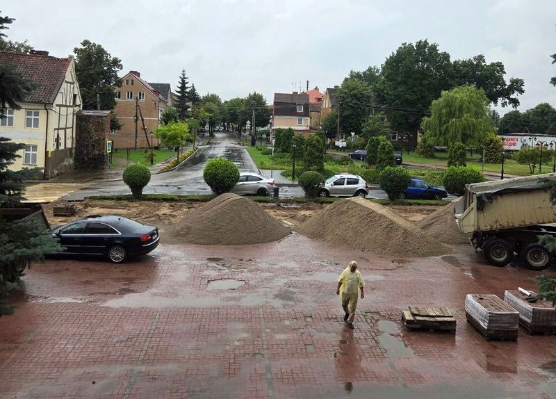 В центре Правдинска у администрации начался капитальный ремонт автомобильной парковки, используемой в туристических целях.