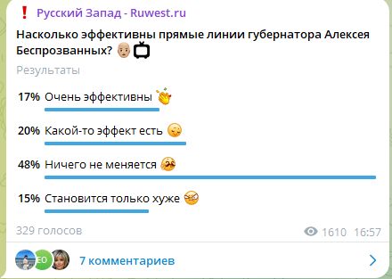 Комментарии в телеграм-канале «Русского Запада» говорят о большом интересе граждан к прямым линиям губернатора: