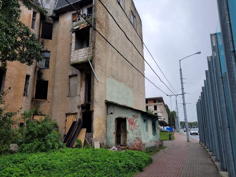 Пугающий пешеходов аварийный дом в районе площади Василевского в Калининграде пока невозможно снести.