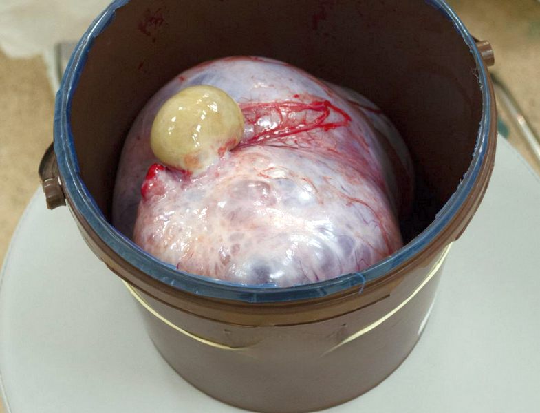 Опухоль выросла до таких размеров, что оставить её было просто нельзя. Понятно, что здоровья такие наросты точно не добавляют. Срезанные ткани с трудом поместились в объёмное 15-литровое ведро.