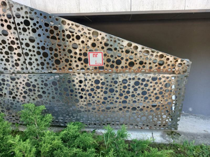 Гулявшие по курорту наслаждались красотами парка и принялись рассматривать оформление фасада театра эстрады. Перфорированный металлический лист окутывал бетонные стены здания, но у бокового входа стальной блеск терялся. При ближайшем рассмотрении оказалось, что железный элемент заржавел. Первые признаки разрушения металла на «Янтарь-холле» начались.