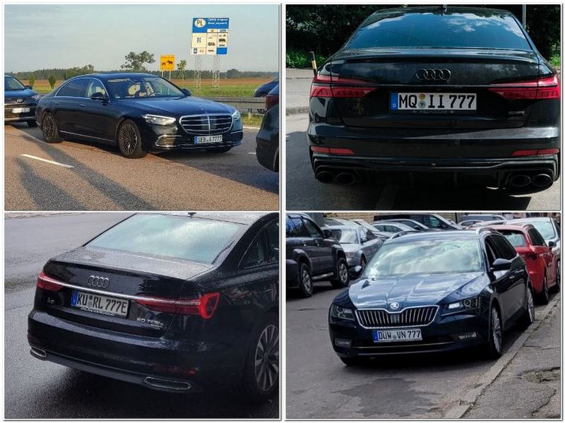 «Русскому Западу» очевидцы прислали множество фотографий, на которых у машин повторяющиеся цифры «7». Такого скопления счастья, даже при том, что почти в каждом микрорайоне стоят машины немецких подданных, не встретишь у нас даже на российских номерах.