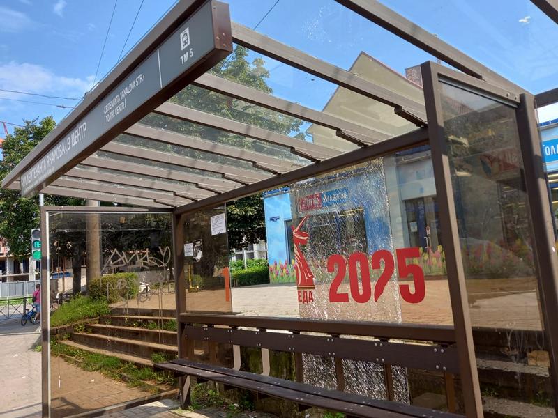 Неизвестные уничтожили стекло на трамвайной остановке «Улица Лейтенанта Яналова». Удары пришлись на изображение силуэта скульптуры «Родина-мать зовёт!», который является частью логотипа юбилея Победы Советского Союза в Великой Отечественной войне. Павильон новый и пробоину в нём видят все, кто выходит на этой остановке.