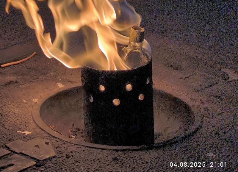 В Калининграде в понедельник, 4 августа 2025 года, вечером у братской могилы советских воинов на улице Комсомольской кто-то положил (или бросил) бутылку из-под спиртного в Вечный огонь.