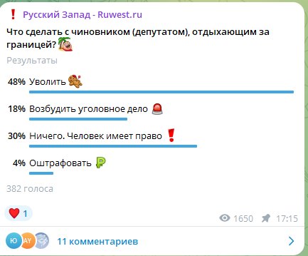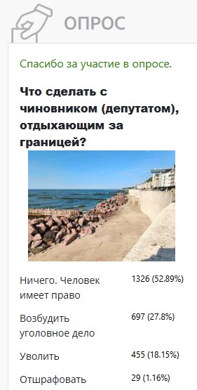 Согласно опросу «Русского Запада», половина респондентов считает, что чиновники могут проводить свой отпуск за границей без последствий для себя.