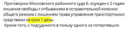 Любопытно, что пресс-служба суда также сообщила, что приговором от 12 августа 2025 года, который господин Букин вряд ли будет обжаловать, он лишён права управления транспортными средствами сроком на... 1 день (цитата).