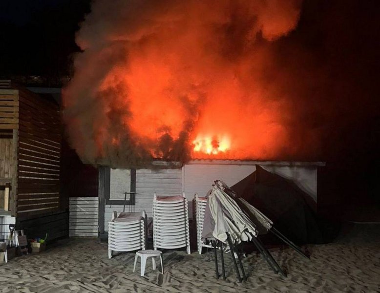 Два спецавтомобиля МЧС экстренно выехали на побережье в 3:23. Пожарные успели вынести из очага возгорания 2 газовых баллона и не дали огню перейти на соседнее кафе. Люди не пострадали.
