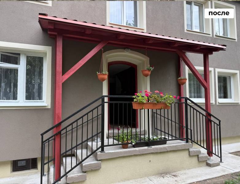Жильцов, безусловно, порадует выглядящее теперь как новое крыльцо. Полностью обновлены входные двери. Над входом установлен козырёк.