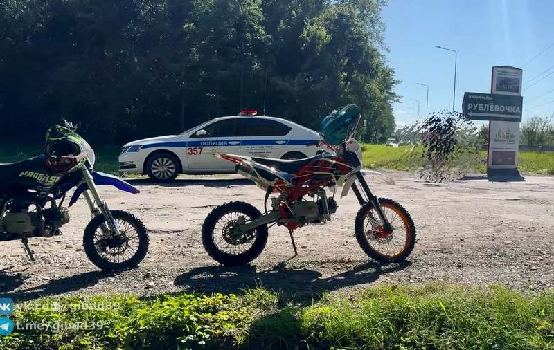 Спецвзвод ГИБДД по Калининградской области остановил юных гонщиков на повороте к коттеджному посёлку Рублёвочка. Подростков – им 13, 14 и 15 лет – отстранили от управления. Один из питбайков увезли на штрафстоянку (не представлены документы о законном владении), другие, видимо, переданы взрослым представителям.