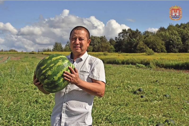 По информации минсельхоза Калининградской области, с полгектара земли он намерен собрать около 15 тонн бахчевых. Первый урожай уже созрел.