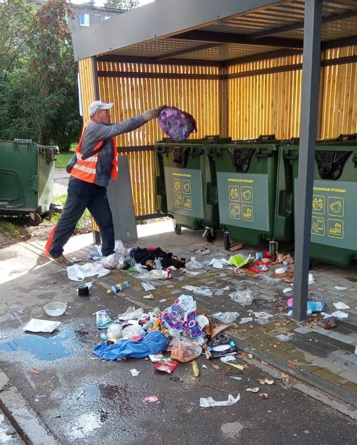 Либо местное быдло наведалось и всё раскидало, либо это сделали голуби и ветер. Одно из двух. Впрочем, многие не раз наблюдали такую же картину и обычных контейнеров, без раздельного сбора.