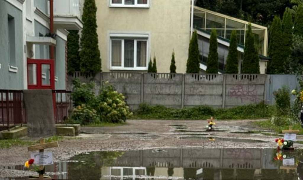 Калининградцы с улицы Катина символические похоронили разбитую дорогу к своим подъездам. Снимки импровизированного кладбища разошлись по соцсетям во вторник, 26 августа 2025 года.
