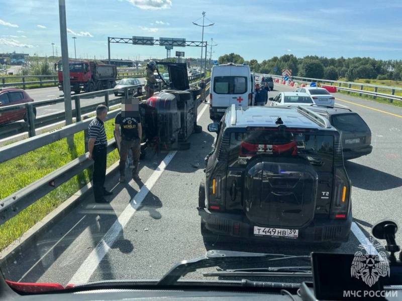 На въезде в Калининград с Приморского кольца у «Балтии молл» в среду, 27 августа 2025 года, около 11 часов, произошла массовая авария.