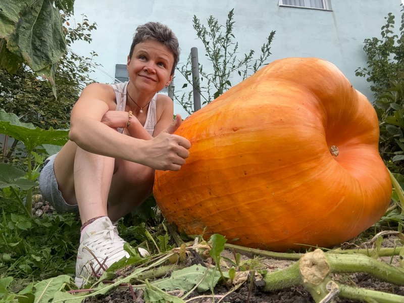 Самую крупную из своих тыкв калининградка назвала Халапеньей. Есть у трудолюбивой женщины и другие крупные растения – урожай вызревает внушительный. Желающих погубить его тоже немало. Особо многочисленными из всех вредителей оказались слизни.
