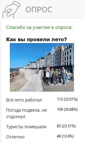 Но есть и неунывающие оптимисты – для 15% лето прошло отлично. Видимо, в опросе поучаствовали наши дорогие туристы из большой России и отдыхающие с чартерных рейсов в Египет.