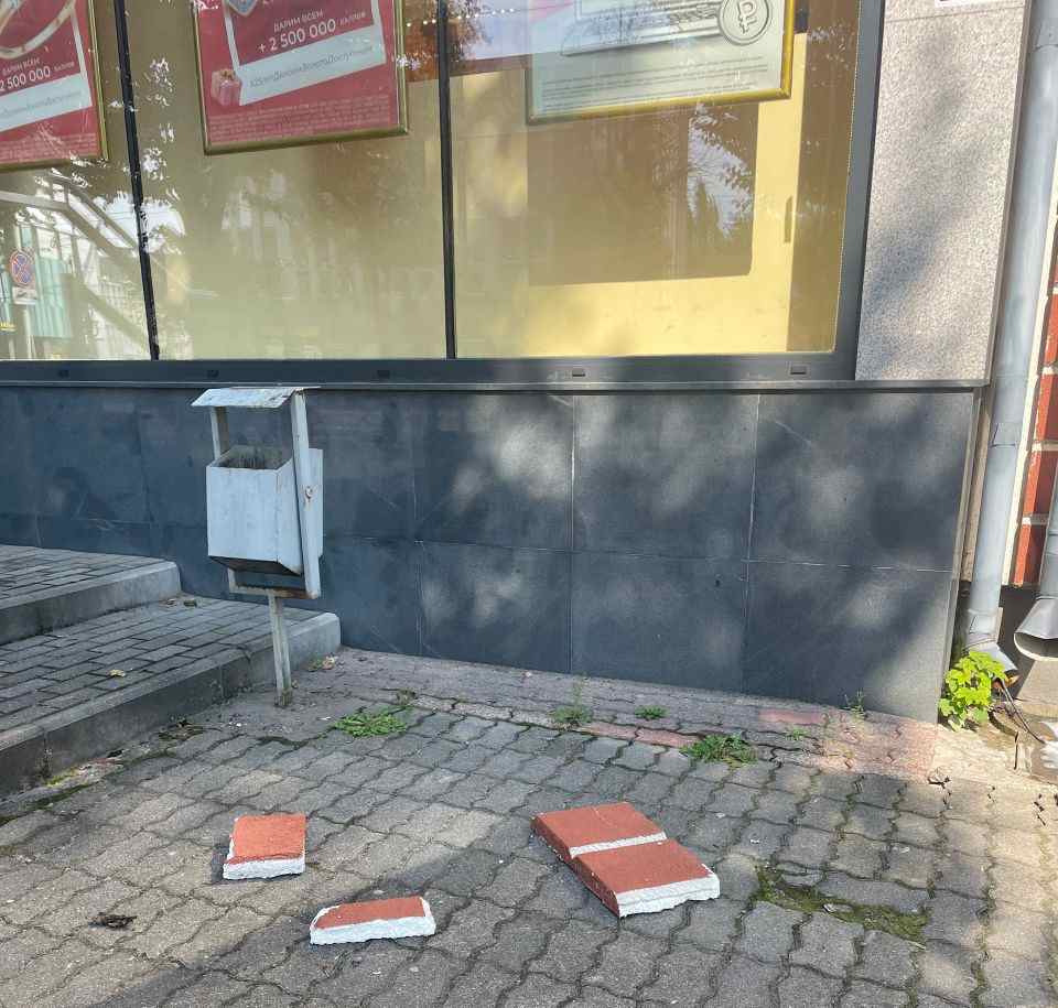 В Калининграде на тротуары Ленинского проспекта начал осыпаться архитектурный декор так называемых ганзейских хрущёвок. Очевидцы сообщили об этом в соцсетях в субботу, 6 сентября 2025 года.