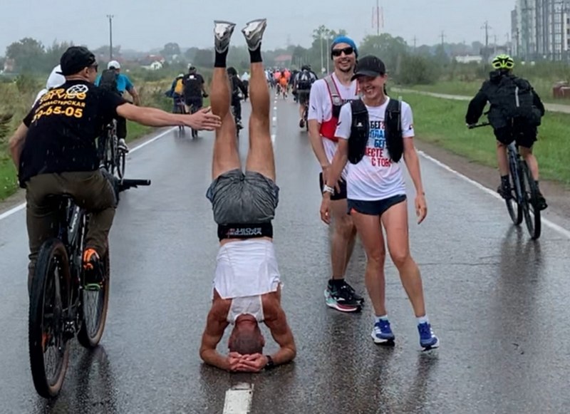 Тренер по бегу Георгий Моргулис принял участие в 38-м «Тур де Кранце» на своих двоих. Стартовал вместе со всеми, в 10 утра от Дворца спорта «Янтарный», в Калининграде. Ещё на разгоне атлет сделал традиционное фото, стоя на голове. Мужчина двигался к морю в гуще велосипедистов и развил немалую скорость, несмотря на то, что мог полагаться только на себя.