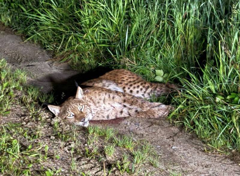 В районе посёлка Добрино Гурьевского района в ночь на 10 сентября 2025 года случайные очевидцы обнаружили на дороге истекающую кровью рысь.
