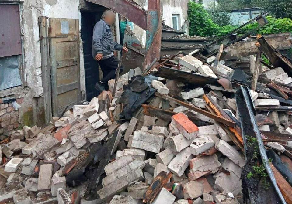 В здании, официально признанном аварийным, проживают многодетная семья на первом этаже и семья с инвалидом на втором. Родственники инвалида вынуждены ежедневно преодолевать опасные завалы, чтобы обеспечить базовые потребности инвалида. Многодетная семья оказалась бы практически заблокирована в своих помещениях, если бы не хорошая физическая форма – приходится ходить по грудам кирпичей.