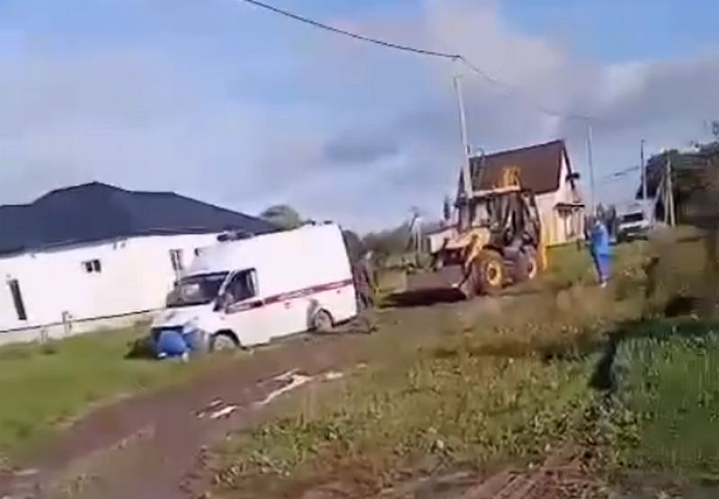 В посёлке Коврово Зеленоградского района в понедельник, 15 сентября 2025 года, машина скорой помощи застряли в грязи нового застраиваемого района.