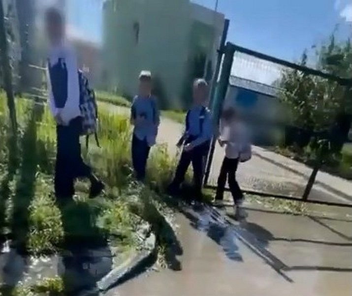В соцсети опубликовано видео с попавшими в водную западню школьниками. Четверо мальчишек пытались перейти улицу Поленова, чтобы затем по народной тропе дойти до улицы Емельянова.
